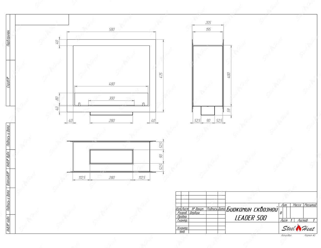 Встраиваемый биокамин Биокамин сквозной SteelHeat Leader 500 предназначен для встраивания в глухие ниши из гипсокартона, кирпича, пеноблоков, бетона.